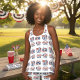 Women's All-Over Print Racerback Tank Top, White Piping, S