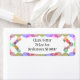 These return address labels have a geometric design of concentric circles in shades of red forming two squares on a field of white.