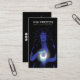 Tarot card reader business cards with a spiritual theme featuring an illustration of a woman holding a glowing moon.