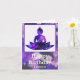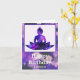 Purple elegant and spiritual Happy Birthday greeting card. The design of lotus flower yoga silhouette with cool purple diagonals abstract background. A beautiful peaceful image to celebrate. Happy Birthday and name on front can be changed along with the sentiment inside.