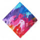 An abstract design mimics splashes of paint in a variety of bright colors.