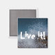 Beautiful And Funky Ocean / Sea Wave Splash / Splashes Live it! Fridge Magnet to add to your unique home / office / business / restaurant decor collection. A cool gift / present idea for all who love custom design personalized items, positive vibes, energy, fun, joy, living to the fullest, traveling etc. Motivation, motivational, explore, waves, sand, holidays, people etc.