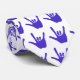 Sign language symbol for I love you, done in blue, is tiled on white ties.
