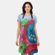 Bright splashes of color cover this abstract all-over print chef's apron. Magenta, hot pink and deep blue colors dominate this fun artistic apron.