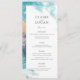 This chic and modern wedding menu features a white background with splashing waves in turquoise blue and faux/fake gold. Personalize it for your needs. You can find matching products at my store.