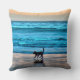 Splashing Dog on Sunset Beach Simulated Watercolor Throw Pillow