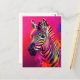 This Splashy Rainbow Zebra postcard features a colorful and whimsical illustration of a zebra with a rainbow mane. The postcard is made of high-quality cardstock. It's perfect for sending a joyful message to a friend or loved one, or for adding a touch of fun to your wall or bulletin board as a decoration. The back of the postcard has a standard postcard layout for writing a message and addressing. Send a smile today with this one-of-a-kind Rainbow Zebra postcard!