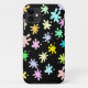 A multicolored splat design against a black background. The random geometric pattern is made up of different pastel colors making a fun and funky abstract design