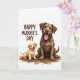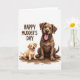 This design shows two friendly dogs on a white background, drawn with warm earthy tones that make them feel close and companionable ❤️. A larger chocolate-brown dog stands slightly forward with a wide grin and a pink tongue out, as if proudly inviting the other to join in. Beside it, a smaller golden puppy mirrors the smile with a tiny tongue showing, giving the pair a sweet, buddy-like connection through their matching expressions. Under their paws, scattered brown splashes and little puddle shapes suggest fresh mud, adding a mischievous “we just played together” moment to the scene. Their bright eyes and relaxed stances create a gentle, affectionate energy, like two friends sharing a private joke 🌼. In the upper left, a short celebratory message sits in rustic brown lettering that echoes the muddy tones below. The fur is shaded with soft depth while the outlines stay sharp, and the mud speckles cluster most heavily beneath their feet.