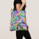 An eye catching abstract in shades of pink, purple, blue, turquoise, green, berry, orange, yellow, black and more makes for a colorful bag!