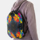 Splatter pattern drawstring backpack for comfortable fit on the back, and for storing and carrying of essentials.
