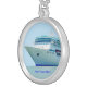 Add on your name in place of the words "Your Name Here" to personalize this necklace, showing the bow of a beautiful vision class cruise ship.