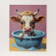 Adorable pets sitting in a bathtub, with water droplets and bubbles around it. The puppy looks at the viewer with wide, innocent eyes, and its little paws rest on the edge of the tub. The overall atmosphere is cute and humorous, making it ideal for a poster set.