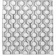 This shower curtain has a mid-century modern design of circles in black split in half and on lines on a field of white.