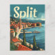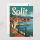 A captivating vintage illustration of Split, a historic city on the Dalmatian coast of Croatia. The design showcases the ancient Roman architecture, stunning coastal views, and lively streets that define this beautiful destination. With a nostalgic and retro aesthetic, the artwork highlights Split's rich heritage and Mediterranean charm, inviting viewers to experience its timeless allure.
