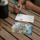 We got these postcards of places with all of our travels for people to send out notes at our wedding! .