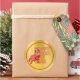 Beautiful split image showing a Chinese Lion Dance on the left and transparent words Happy Lunar New Year on the right. The red outline of the words matches the red lion dance which is symbolic of fortune, happiness and prosperity. Printed on a bright golden foil-like background, this sticker gives a modern and trendy twist to the traditional Chinese New Year greeting.