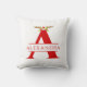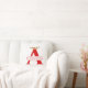 Christmas Monogram Letter A Deer Antlers Festive Throw Pillow is a two sided design. The split monogram letter A, decorated with deer antlers and a flower wreath is on the front. There is a text field you can customize with your name. The back is a red and white stripe pattern