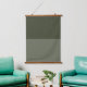 This modern wood-topped wall tapestry pairs two moss green finishes for a grounded, yet elevated look. The upper section features a deep moss tone with a subtle noise texture, while the lower half offers a smooth matte version — together creating a visual harmony ideal for large-scale decor. Framed by minimalist wood rails and suspended by a rustic rope, this tapestry complements both classic and contemporary spaces.