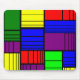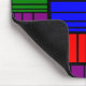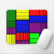 This mouse pad has a Bauhaus design of rectangles divided into ever smaller pieces in red, yellow, blue, green, purple on a field of black.