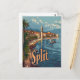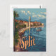 A captivating vintage illustration of Split, a historic city on the Dalmatian coast of Croatia. The design showcases the ancient Roman architecture, stunning coastal views, and lively streets that define this beautiful destination. With a nostalgic and retro aesthetic, the artwork highlights Split's rich heritage and Mediterranean charm, inviting viewers to experience its timeless allure.