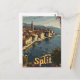 A captivating vintage illustration of Split, a historic city on the Dalmatian coast of Croatia. The design showcases the ancient Roman architecture, stunning coastal views, and lively streets that define this beautiful destination. With a nostalgic and retro aesthetic, the artwork highlights Split's rich heritage and Mediterranean charm, inviting viewers to experience its timeless allure.