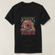My 11 yo wore adult XL (5’7” 165#). The 8yo is small framed. She wore adult small and tied it in the back. Grandma wore adult large with long sleeve shirt underneath. Tall girl adult medium. Dark haired male adult large. Good quality dark Heather gray, Gildan brand shirt. -it was next up from basic choice and cost about $20 per shirt. Not too thick or thin. Washed and dried well, no major shrinkage. Not see-through. Can wear a bra under it fine. Screen print is just as shown and well done, front and back.
