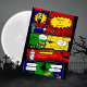 Celebrate your halloween spooktacular party bash in style with this aesthetic fun and scary modern comic story book. The invitation is colorful and tells a retro comic story invitation with speech bubbles. It shows a story with cat, spider, bat, candles, ghost, scary hand, screaming ghost. Personalize it with your details, your monogram for your extraordinary cartoon celebration.
