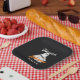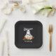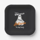 A playful Halloween Paper Plates featuring a cheerful cartoon ghost with bold "BOO!" lettering across its chest. Set against a dramatic black backdrop, the design pops with whimsical typography and festive colors. The top and bottom text create a lively seasonal message, while the family name area is fully customizable—perfect for adding a personal touch to your haunted hello. Ideal for spreading spooky cheer with charm and flair.