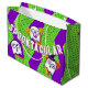 Celebrate a cute and spooky holiday with this Spooktacular gift bag featuring green and purple stripes, cute ghost characters, and the word "SPOOKTACULAR" on the front and back. This giftbag is perfect for a Halloween-themed party, birthday, or any occasion to share a Halloween themed gift. Characters are cute and sweet.