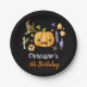 Spooktacular Halloween Bash Kids Birthday Party Black Paper Plates. For further customization, please click the "Customize it" button and use our design tool to modify this template.