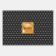 Wrap your Halloween goodies and gifts in these fun wrapping paper sheets featuring spooktacular patterns. One is black with a pattern of small white stars and a label to which you can add your name surrounded by a ghost, a bat, and spiders. One features stripes in black, white, and orange. And one shows a fun pattern of ghosts and bats and bones in black, orange, and white.