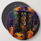 Spooky Afghan Hound Halloween Witch and Pumpkin Button