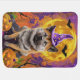 Embrace the Halloween spirit with this enchanting design featuring a cute dog in a witch hat surrounded by carved pumpkins. Perfect for adding a touch of spooky charm to your festive celebrations.