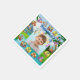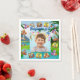 In the center, a space is reserved for a custom photo of the birthday child, making these napkins not just functional but also a charming keepsake from the party. The vibrant colors—rich greens, bright oranges, and soft purples—create an eye-catching design that captures the fun spirit of a Halloween-inspired celebration.