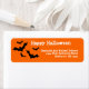 Halloween sticker labels. Customize with your name and address or wording of you choice. Features a group of black bats flying in the sky on Halloween night. Kinda Spooky. Happy Halloween, along with your name and address are written in in white on a orange background. A fun design for you mailers or as a sticker during the holiday time. For other uses, such as baking goods, candy, or Halloween favor bags, just list your name, or from The Johnsons, etc, and change text size if needed.