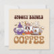 Start your haunted mornings right with this playful greeting card featuring the phrase “Spooky Before Coffee.” A ghost-shaped coffee brew floats front and center, capturing the mood of every caffeine-craving ghoul before their first sip. A perfect blend of spooky and relatable, this design brings Halloween humor to your everyday coffee routine.