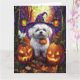 Spooky Bichon Frise Halloween Witch And Pumpkin Card