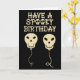 Send some spooky birthday wishes their way with this card, that features my skull shaped balloons illustrations. The front of the card features the message HAVE A SPOOKY BIRTHDAY along with the skull balloon graphics. The illustrations and text are in an ivory color against a black background. The message on the inside can be customize with your own greeting.