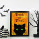 Bring eerie charm to your walls with this Halloween black cat poster! Featuring a scruffy black cat silhouette with piercing green eyes against a glowing orange dusk background, this artwork sets the stage for spooky celebrations. The bold, cartoon-style design pops with rich contrast, making it a striking centerpiece for Halloween parties, haunted house entrances, or seasonal décor.