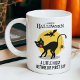 Embrace the Halloween spirit with this cute coffee mug that features a spooky black cat, a black widow spider, a creepy fluttering bat, and a glowing full moon. This design is further enhanced with decorative script typography that reads, “Happy Halloween” and customizable text that says, “A Little Sassy Before My First Sip.” Add a name or modify the text to create a charming gift that’s perfect for coffee lovers and Halloween enthusiasts. Enjoy a little hissy fun before your first sip.