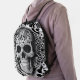 Spooky Black & White Smiling Lace Skull Drawstring Bag