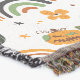 This whimsical and spooky-sweet design combines classic Halloween imagery with a modern, bohemian twist. Featuring a seamless pattern of smiling, jagged-toothed jack-o'-lanterns and mysterious, multi-eyed pumpkins, this artwork is perfect for adding a touch of festive fun to any product. Playful ghosts, swirling tendrils, and scattered stars float alongside earthy, retro rainbows, creating a unique and eye-catching aesthetic. The color palette of burnt orange, olive green, and deep black on a clean white background makes it versatile for a variety of products, from home decor to apparel and party supplies. It's the ideal design for anyone who loves a blend of spooky charm and stylish, contemporary art.