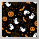 Whimsical Halloween pattern filled with playful pumpkins, mischievous ghosts, fluttering bats, and twinkling stars.