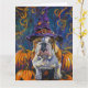 Spooky Bulldog Halloween Witch And Pumpkin Card