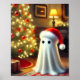 Christmas spooky ghost poster, holiday ghost art, spooky Christmas decor, Halloween meets Christmas, haunted holiday decorations, ghost wall art, quirky Christmas poster, festive spooky print, winter ghost art, Christmas decorations for ghost lovers.