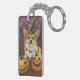 Spooky Corgi Dog Halloween Witch Pumpkin Keychain