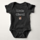 This adorable "Little Ghoul" baby bodysuit is the perfect outfit for your little one's first Halloween! Featuring a whimsical, friendly ghost wearing a cozy beanie and holding a jack-o'-lantern, this design is both spooky and sweet. The phrase "Little Ghoul" is displayed in a charming, textured font, making it a unique and fun choice for the fall season.