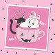 Spooky cute pink Halloween paper napkin featuring a whimsical ghost inside a cup and a black cat hiding behind it . It can be personalized it with your text and name . The non-scary design make it perfect for a child-friendly party . Don't forget to pick a size .