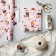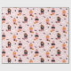 Adorable Halloween patterned wrapping paper with spooky houses, jack-o'-lanterns, ghosts, black cats and bats. The cute design in pink, orange, black and red is perfect to add a touch of spooky magic to your Halloween gift wrapping.